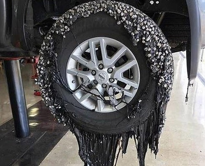 حتی کامیونهای عظیم حمل سنگآهن در این منطقه هم از گرما در امان نیستند.