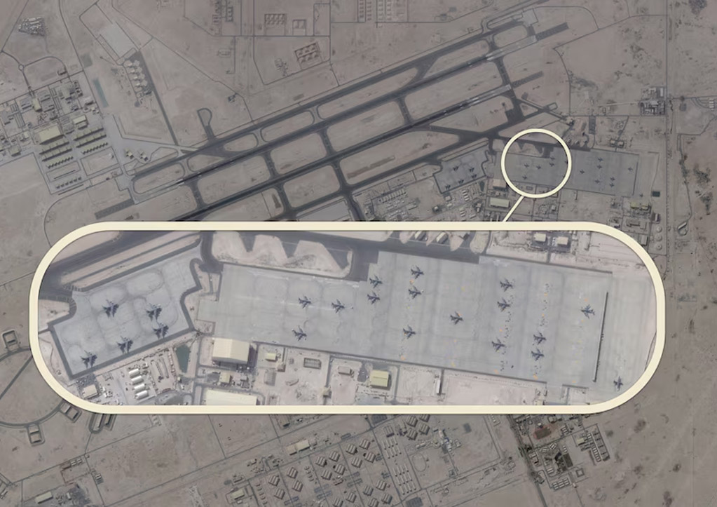 تصاویر ماهوارهای پایگاه هوایی العدید آمریکا در قطر در تاریخ ۲۵ ژانویه، افزایش قابل توجه جنگندهها و تجهیزات نظامی را نشان میدهد؛ تجهیزاتی که در تصاویر هفته قبل دیده نمیشدند. جنیفر پارکر، مدیر پیشین عملیات فرماندهی مرکزی آمریکا، میگوید علاوه بر جنگندهها، هواپیماهای سوخترسان نیز به منطقه اعزام شدهاند که میتوانند در عملیات احتمالی علیه تأسیسات هستهای ایران نقش کلیدی داشته باشند. به گفته او، این سطح از آرایش نظامی پرهزینه است و احتمال حمله را تقویت میکند.
