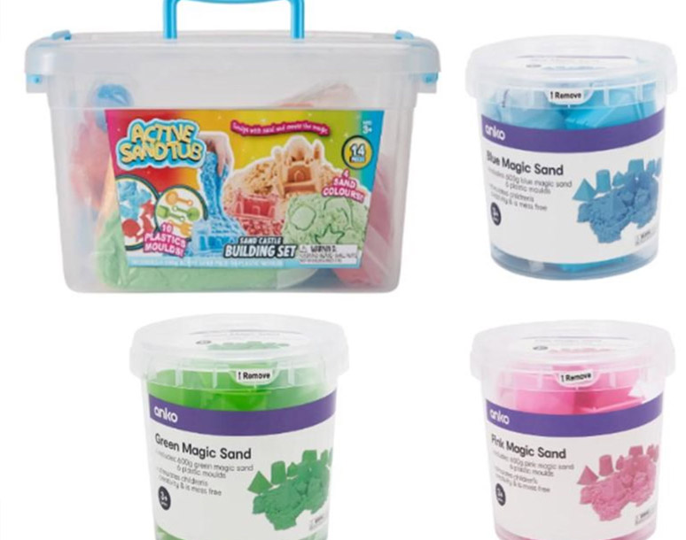 - Magic Sand در رنگهای آبی، سبز و صورتی (فقط Kmart)